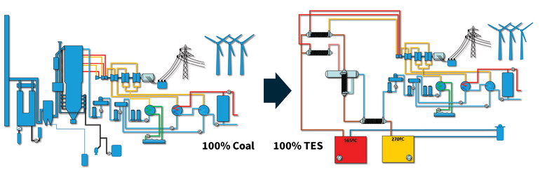 The header-coil heat exchanger system from Aalborg CSP together with the HeatCube PTXSALT plant can be considered a green base-load plant and reuse parts of the existing infrastructure such as the steam turbine and thereby form the basis of future conversions of existing Coal Fired Power Plants.